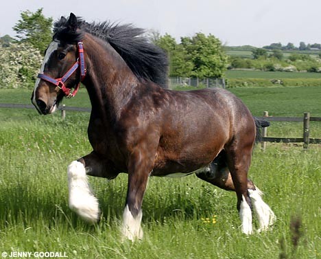 Z války k orání pole,z venkovského bláta ke knížecím kočárům.Takoví je vznešený uděl tažného koně!Shirský kůn' už přečkal staletí do dob,kdy byl jezdeckým koněm anglických rytířů.Tento obr,největší kůn' na světě,je také jedním z nejkrásnějších.
